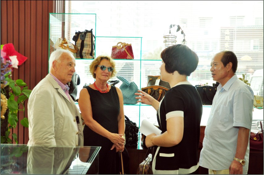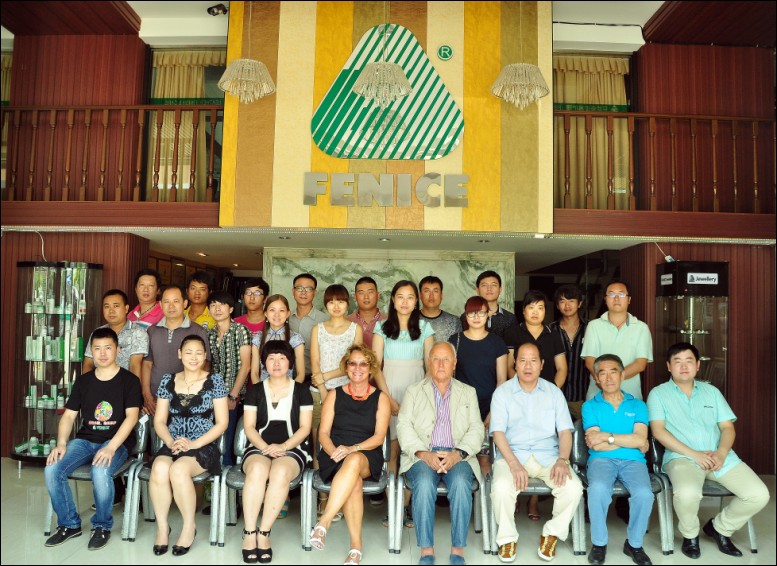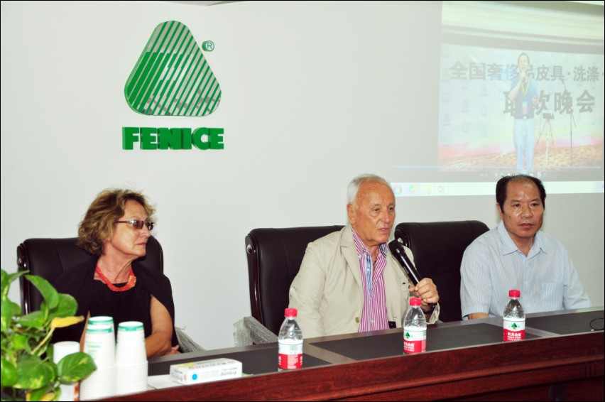 2012年7月2日意大利芬尼斯皮革化工专业公司总裁:DR.GIUSEPPE PISI及总裁夫人一同来参观温州市芬尼斯皮革化工有限公司,对于新厂房的落成PISI总裁表示祝贺!对于正在学习芬尼斯皮革护理技术的加盟商及学员们表示亲切的问候,并在会议上互相交流行业的最新信息及意大利芬尼斯皮革化工专业公司的最新产品。PISI总裁还表示与温州市芬尼斯皮革化工有限公司及董事长鲍光华先生合作非常愉快!希望以后在加盟商及代理合作商的共同努力下让芬尼斯发展的更好!