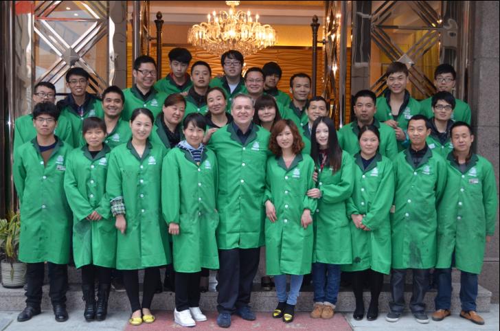 2013第二期加盟商与意大利芬尼斯专家(安局先生)集体合影,并现场技术交流