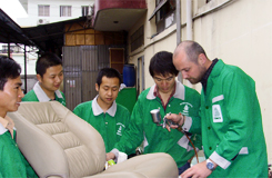 作为皮革专业归国留学生、温州芬尼斯皮具护理专业公司总经理鲍利聪女士亲自主持公司的技能培训工作,同时公司聘请国内皮具护理知名工程师、北京市洗染行业协会专家组专家、《皮革制品美容护理》一书的作者杜秀章老师作讲师,坚持以实际操作技能培训为主、基础知识培训为辅的原则,对加盟商朋友进行裘皮服装、皮鞋、皮衣、真皮沙发、汽车座垫、真皮箱包等皮革制品的美容护理技术进行全方位的培训。
