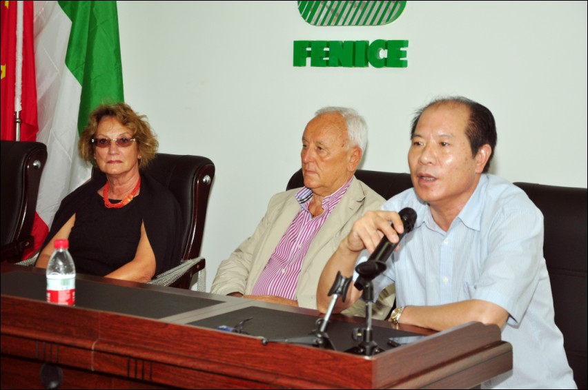 2012年7月2日意大利芬尼斯皮革化工专业公司总裁:DR.GIUSEPPE PISI及总裁夫人一同来参观温州市芬尼斯皮革化工有限公司,对于新厂房的落成PISI总裁表示祝贺!对于正在学习芬尼斯皮革护理技术的加盟商及学员们表示亲切的问候,并在会议上互相交流行业的最新信息及意大利芬尼斯皮革化工专业公司的最新产品。PISI总裁还表示与温州市芬尼斯皮革化工有限公司及董事长鲍光华先生合作非常愉快!希望以后在加盟商及代理合作商的共同努力下让芬尼斯发展的更好!