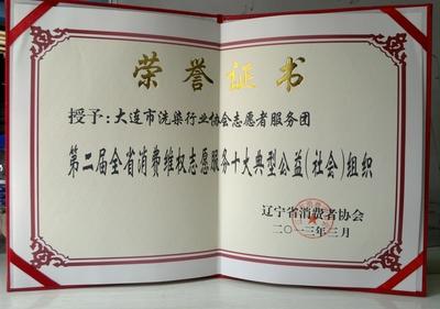 第二届全省消费维权志愿服务活动刚刚落下帷幕,并取得了圆满成功。大连市洗染行业协会获得辽宁省消费者协会授予的第二届全省消费维权志愿服务十大典型公益组织荣誉称号,这是大连地区唯一获此殊荣的服务团体。