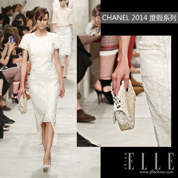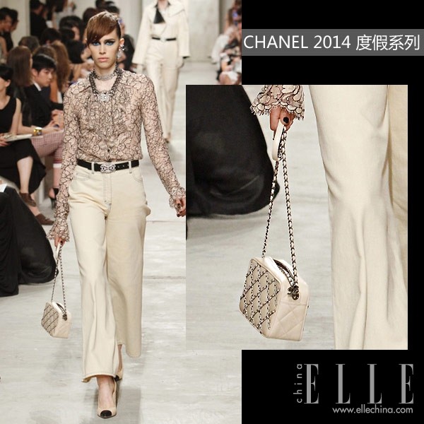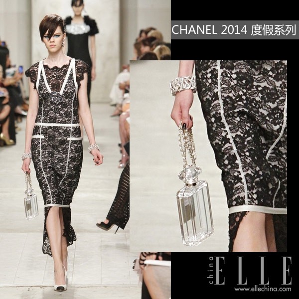 Chanel2014早春度假系列在新加坡Loewen Cluster盛大举行。当大家都把关注度放在现场的明星、当晚的华服之上时,我们不妨来看看秀场上的细节之一——包袋。在这次Chanel度假系列中,以浅色系包袋为主,不仅可以发现经典款如Classic Flap、Le Boy的影子,还能看到对复刻版款式的全新演绎。当然,这次最大的亮点莫过于以Chanel香水瓶为灵感的手袋!