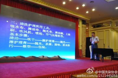 由中国商业联合会洗染专业委员会主办,大连市洗染行业协会承办的“2013全国奢侈品皮具护理技术交流演示会”6月4 -6日在大连成功举办,中国商业联合会洗染专业委员会常务副主任兼秘书长潘炜,常务副主任王厚增,副主任卢志基、平炬、林俊,副秘书长杨泽、王继东、陈爱华,皮革护办公室副主任于锦山、陈涛、鲍利聪,部分地方协会领导及全国洗染业人士170余人参加了会议。