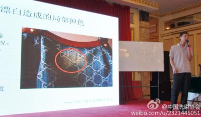 洗染委常务副主任兼秘书长潘炜在开幕式上致辞 大连市洗染行业协会秘书长王继东在开幕式上致辞 会议邀请了行业重量级皮革护理专家进行专题演讲,与大家互通有无。6月5日大连友邦洗衣的支皓老师讲解的“皮革加工技术在皮革洗护中的应用”,系统的向大家介绍了皮革加工的技术,及皮革加工技术与皮革洗护两者之间的重要关系,使大家了解皮护过程中“看皮做皮”的重要性;大连郑氏美鞋吧的郑召明老师讲解了“高档休闲鞋的清洗技术”;林俊副主任介绍了奢侈品服饰及皮具精洗护理市场的商机及奢侈品服饰,皮具护理门店的经营管理理念;鲍利聪副主任为大家介绍了2013年奢侈品时尚趋势及油蜡皮护理工艺等课程,使参会者了解到即将要接触到的奢侈品皮具护理新趋势及新问题;6日上午于锦山副主任为大家介绍了高端奢侈品皮具护理店面的选址、装修布局及高端客户的锁定,皮革最新流行趋势、疑难皮革、事故皮革救治经典案例分析,并在现场进行了奢侈品皮具金属饰件磨损后镀金修复,用色彩扫描仪瞬间分析色彩组成,漆皮包搭色后改成黑色,用超级海绵使旅游鞋黄边变白等技术的演示操作;来自上海兰贝尔衣物救治中心的总经理王雪峰讲解了奢侈品布艺箱包局部补色工艺与清洗后变形搭色救治办法。 6日下午,是别具一格的《访谈交流》活动,由洗染委常务副主任兼秘书长潘炜先生亲自主持,被采访的嘉宾分别是艾派尔总经理曾涛,荣昌伊尔萨技术总监任树成,铁岭禄举洗衣总经理刘禄举,北京洁宝技师郭彪。大家畅所欲言的和同行聊技术谈成功之道。