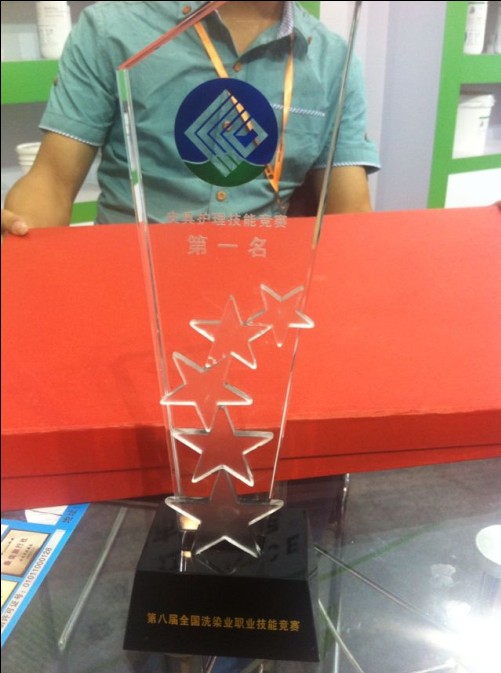 热烈祝贺芬尼斯戴旭禹老师(照片中领奖者从右至左第三位) 荣获“第八届全国洗染业职业技能竞赛第一名” 并授予“全国洗染业技术能手”荣誉称号!
