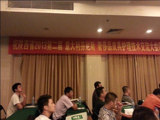2013年8月19日“陕西省第二届意大利(FENICE)芬尼斯奢侈品皮具护理技术交流大会” 在西安的解放饭店会议厅隆重举行!预祝大会圆满成功!