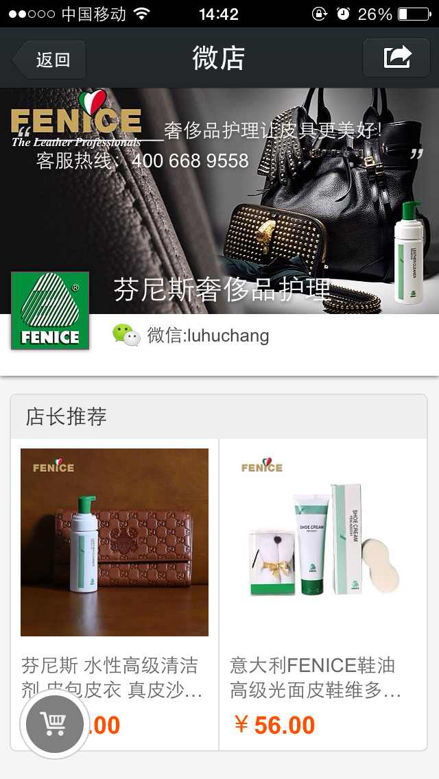 芬尼斯-微店上线啦! 奢侈品护理小包装产品闪耀来袭! 点击右边超链接至 → 微店